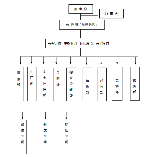三門峽騰躍同力水泥有限公司位于河南省澠池縣境內(nèi),地處晉、陜、豫三省交匯處,緊靠連霍高速公路、310國(guó)道,314省道交通便利。公司總面積274175.46m2,公司類型為一人有限責(zé)任公司。公司實(shí)行董事會(huì)領(lǐng)導(dǎo)下的總經(jīng)理負(fù)責(zé)制,下設(shè)綜合管理部、生產(chǎn)部、財(cái)務(wù)部、采購(gòu)部、市場(chǎng)部、銷售部、物流部、質(zhì)量技術(shù)部、安全環(huán)保部、黨群部。生產(chǎn)部下設(shè)燒成車間、制成車間、礦山車間。